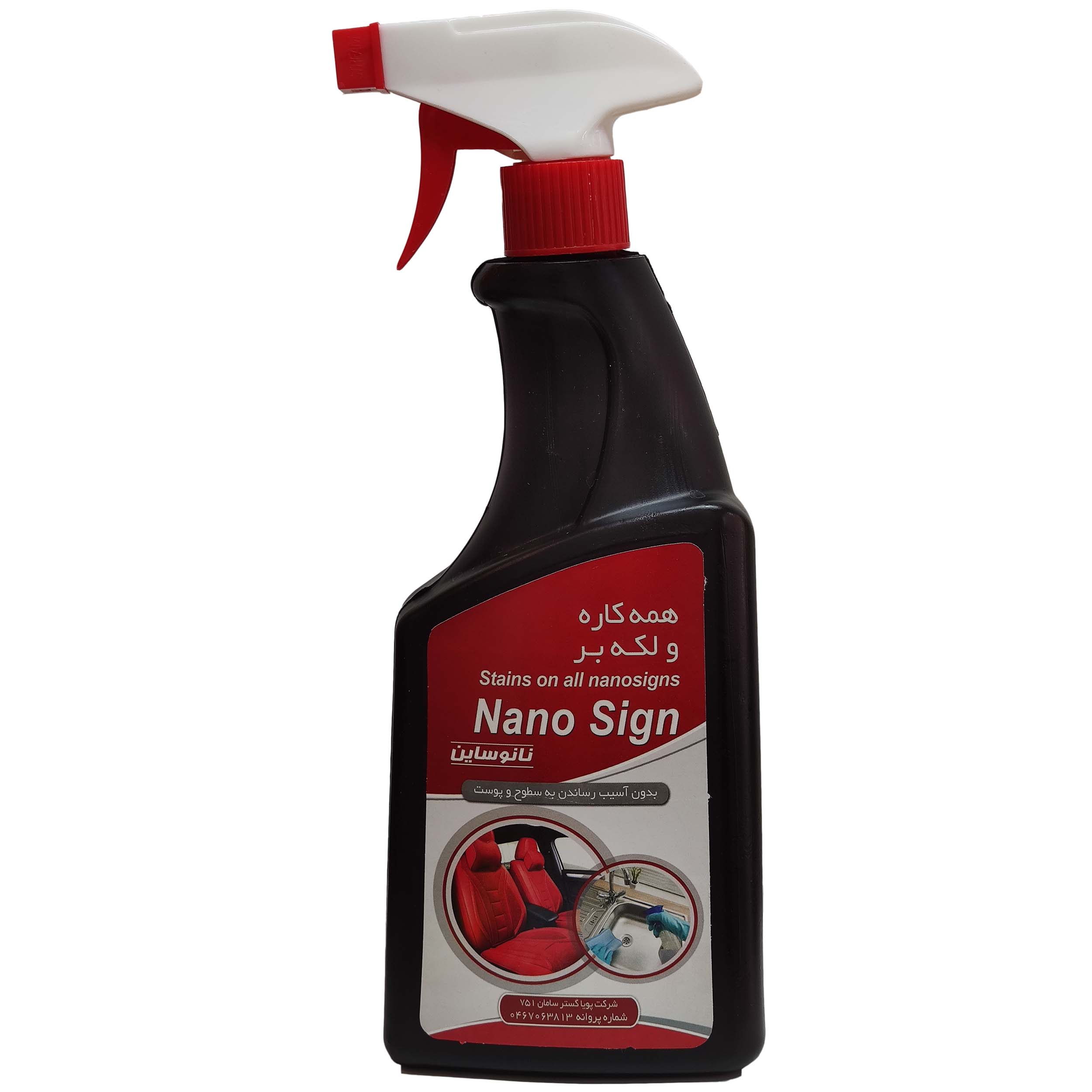 در واقع با یک تیر دو نشان می زنید.این محصول(اسپری همه کاره و لکه بر نانوساین) در منزل بسیار به کمک شما می آید .برای مثال: شامپو فرش : تمام لکه ها و کثیفی های موجود بر روی انواع مبلمان چرم و پارچه ای و انواع فرش را از بین می برد(غیر از فرش دستی و ابریشم) لکه بر سطوح :پاک کننده انواع جرم های روی سطوح و دیوار های اداری ،کارخانجات و منازل براق کننده ی استیل :از بین برنده ی انواع جرم روی استیل جات و براق کردن سطوح استیل چربی بر:خانم ها بیشتر وقت خود را در آشپزخانه سپری می کنند و تمیز بودن اجاق گاز که هر روز از آن استفاده می کنند برایشان مهم است .اسپری نانو ساین چربی زدایی فوق العاده ای دارد و تمام چربی های انواع اجاق های صنعتی و خانگی،کف کارگاه های صنعتی و آشپزخانه را از بین میبرد.