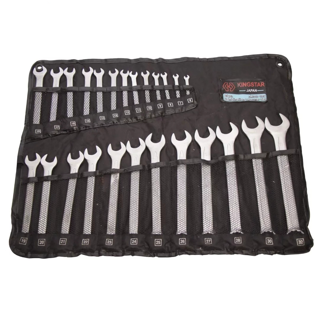 مجموعه 25 عددی آچار یکسرتخت و یکسر رینگ از سایز 6 تا 32 میلیمتر میباشد .جنس از کروم وانادیوم و ساخت کشور ژاپن است. بسیار مناسب و با کیفیت جهت کارگاه های صنعتی و مکانیک میباشد.