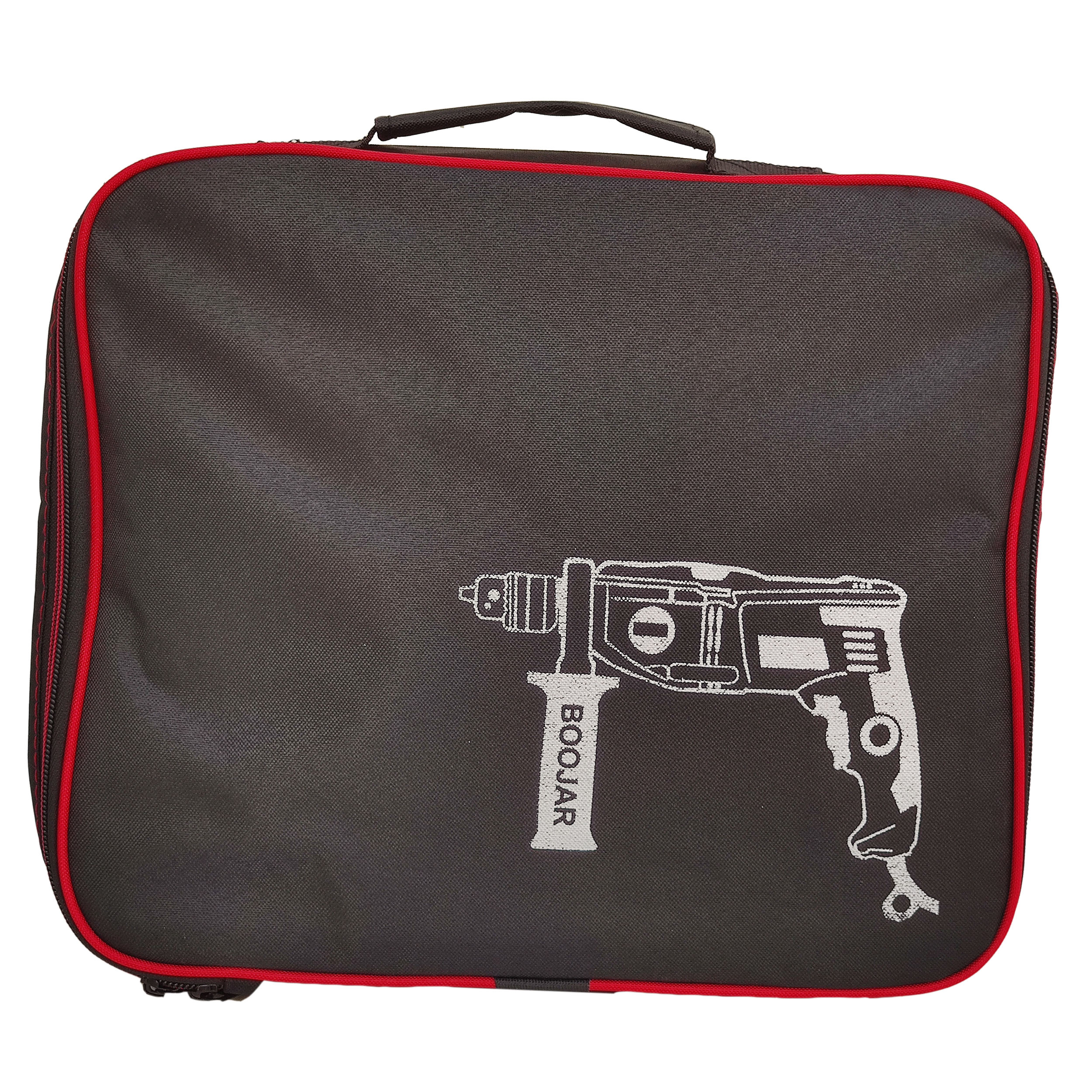 کیف دریل بوجار که جنس بدنه از پارچه مستحکم ضد آب(جودان پشت پی وی سی) است .