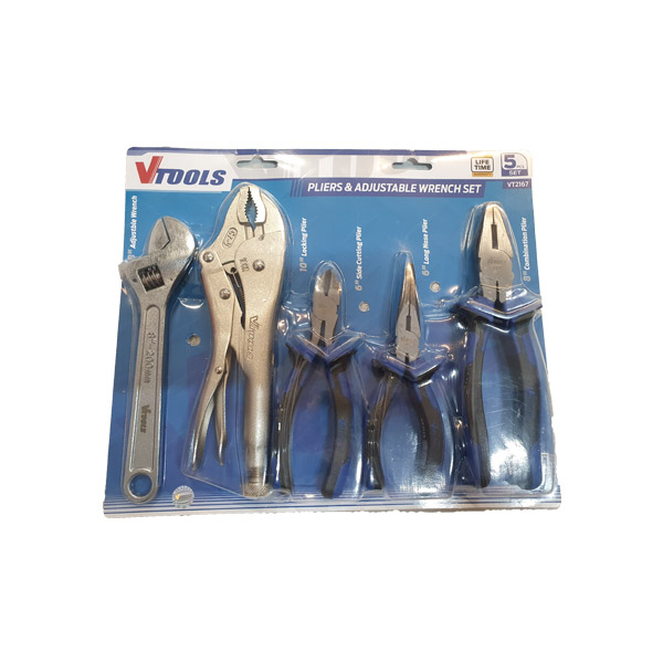 مجوعه 5 عددی انبردست-دم باریک -سیم چین-انبر قفلی-آچار فرانسه